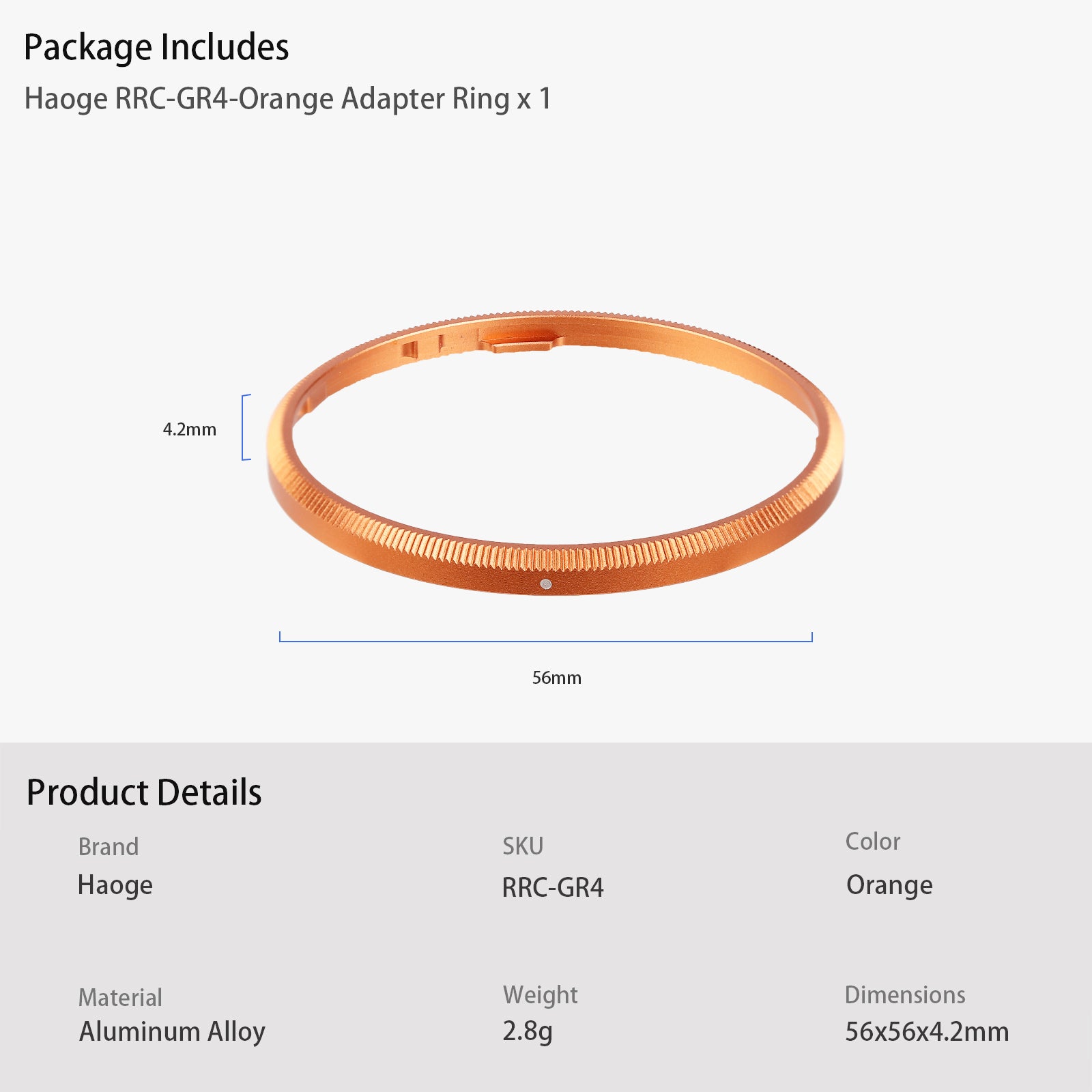 The Haoge Metal Ring Cap is designed for RICOH GR IV. It enable you to replce the original ring GN3.