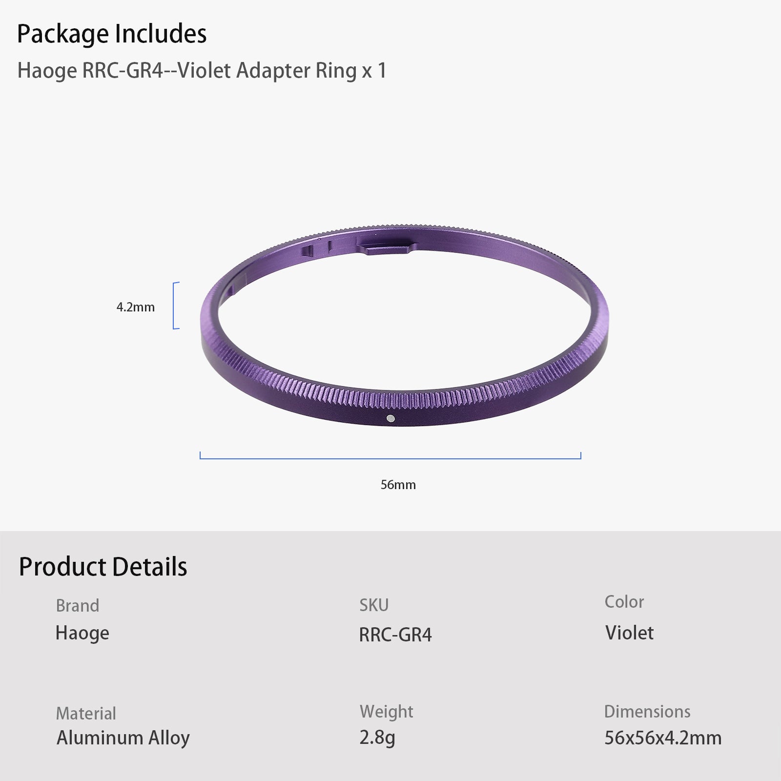 Haoge RRC-GR4-Violet Metal Decorate Ring Cap for RICOH GR IV Camera replaces GN-3