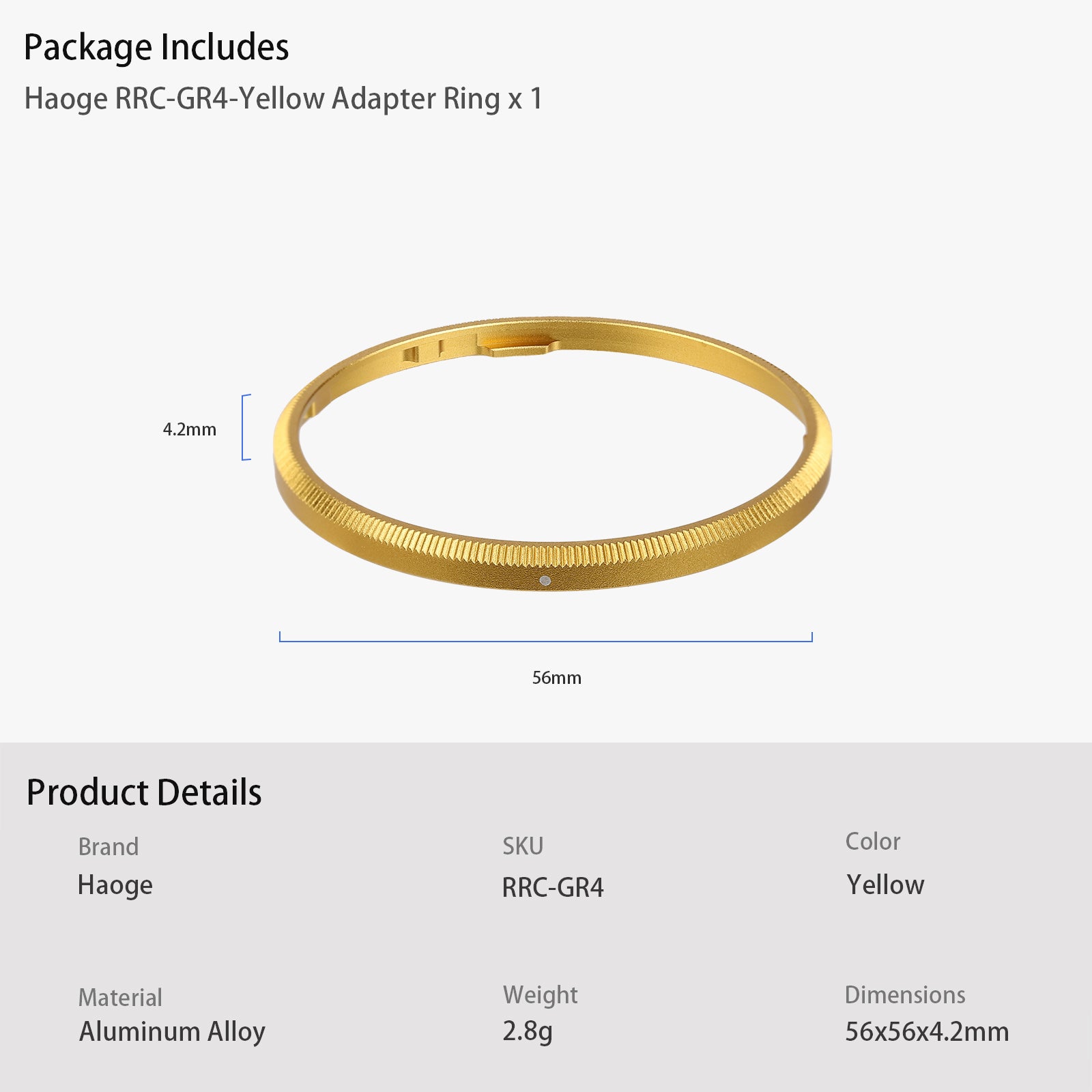 The Haoge Metal Ring Cap is designed for RICOH GR IV. It enable you to replce the original ring GN3.