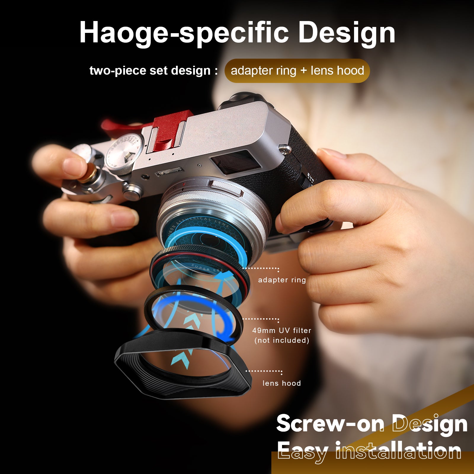 Haoge Square Metal Lens Hood with 49mm Uv Filter Adapter Ring for Fujifilm X100VI Fuji X100V X100F X100T X100S X70 Fuji Photo Camera Accessories LH-X1006B Black