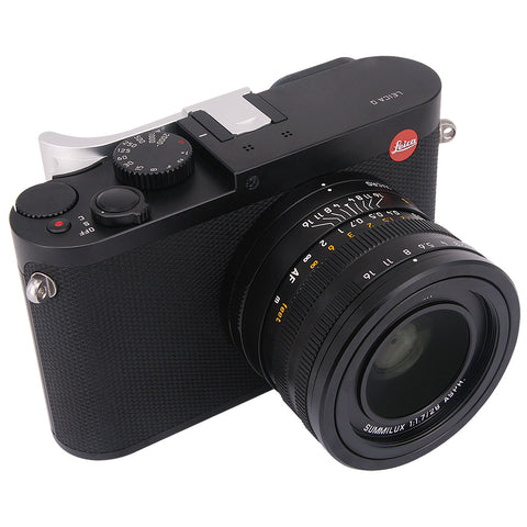 The Silver Thumbs Up Grip attaches to your Leica Q (Typ 116) via the hot shoe to dampen vibrations and provide stable, protected contact with the camera. This grip provides a more ergonomic structure to the camera, allowing for greater one-handed operation as well as more balance and less grip pressure required when shooting.